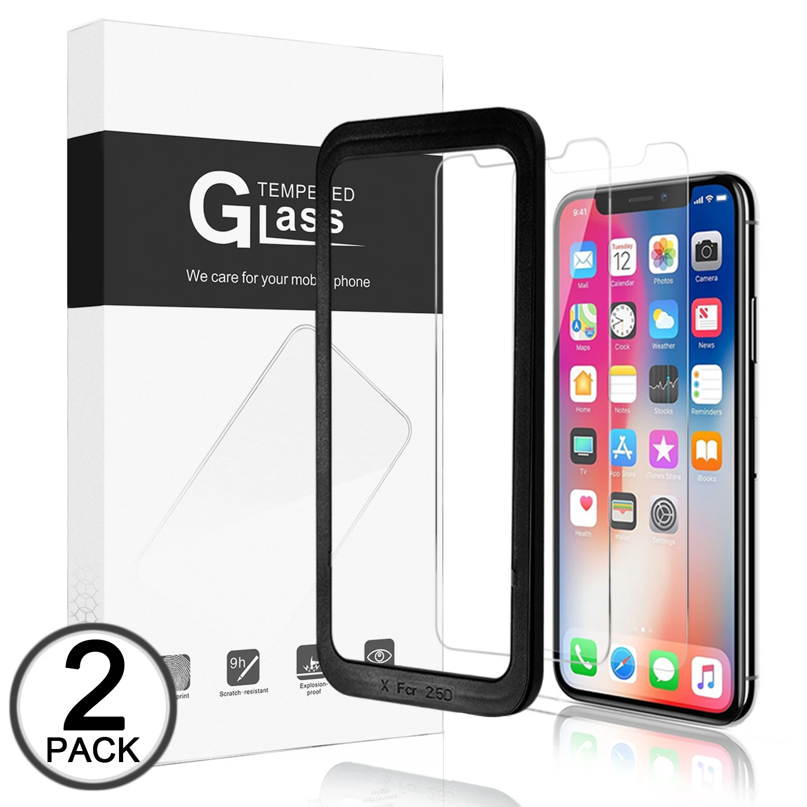 For iPhone 6 7 8 Plus X 11 Pro Max Screen Protector 2 pack Twin Pack With Applicator Tool